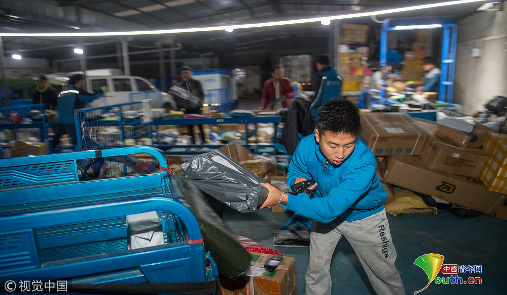 云南省昆明市,攝影師實拍90后快遞員熊忠桃的一天工作。作為一名快遞員,他25歲就買了房。圖片作者:銳圖
