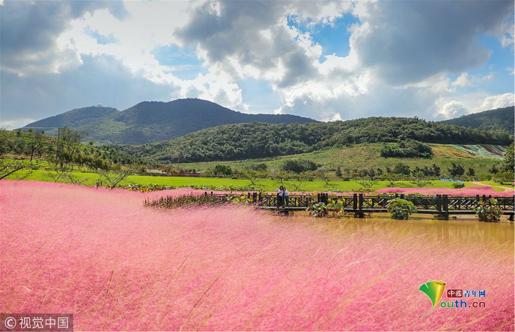 當(dāng)游客來(lái)到這里,立刻被眼前的一片浪漫的粉色所吸引。只見(jiàn)半人高的粉黛亂子草,縹緲如輕煙,搖曳似夢(mèng)幻,伴著微風(fēng)掀起了一陣陣的波浪。