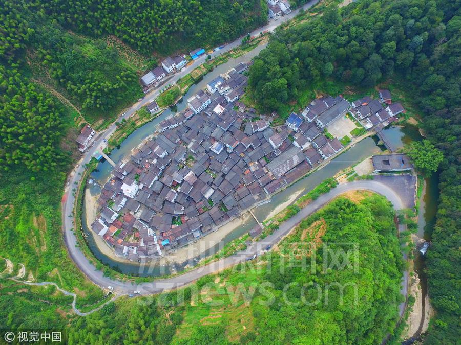 深圳新聞網(wǎng)訊 四面青山環(huán)繞,小河成大半圓形圍繞一周,眼前這個山環(huán)水繞的小村莊被稱為“中國最圓的村莊”,沿山間小路建設(shè)的臺階而上,站在一處觀景臺往下看,這個村子的形狀在山水襯托下,宛如一個圓形的島嶼。