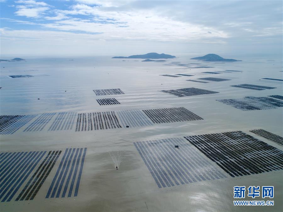 這是11月4日無人機拍攝的霞浦縣三沙鎮(zhèn)的紫菜種植區(qū)。 近日,福建省霞浦縣沿海6萬畝紫菜迎來收獲季節(jié),漁民們出海收獲紫菜,海上田園一派繁忙豐收景象。 新華社記者 姜克紅 攝