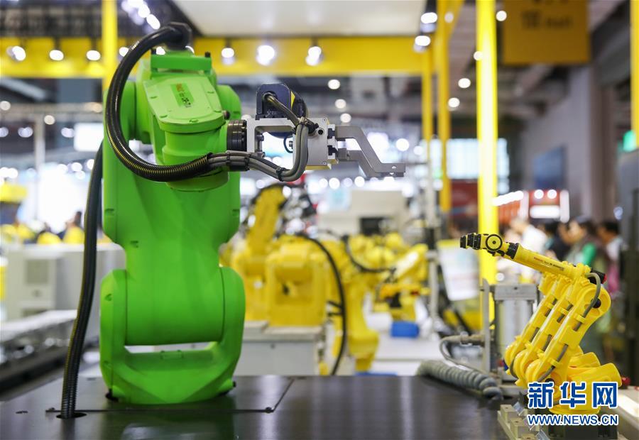 11月6日,日本發(fā)那科公司的協(xié)作機器人在展臺上展出。 新華社記者 丁汀 攝