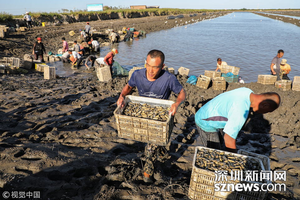 緊挨著黃海的大片養(yǎng)殖區(qū),因?yàn)橐粭l濱海大道,被自然劃成南北兩個(gè)部分。挖蟶人從四面八方趕來,或集體包車、或自駕摩托。這些機(jī)動(dòng)車密密地??吭跒I海大道一側(cè),綿延數(shù)公里。