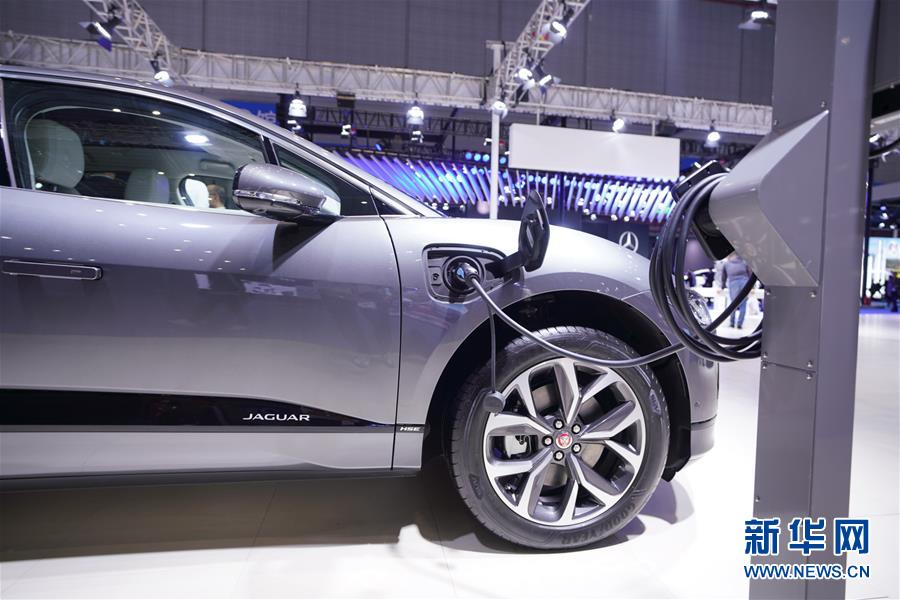 這是11月5日在汽車展區(qū)拍攝的捷豹純電動I-PACE汽車。新華社記者 孟鼎博 攝