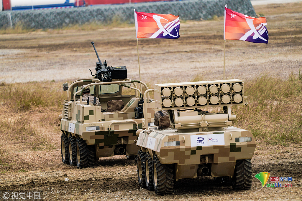2018年11月8日,廣東珠海航展上,中國(guó)兵器集團(tuán)等組織地面的輪式即履帶式的武器裝備,進(jìn)行地面多種項(xiàng)目動(dòng)態(tài)展示。視覺(jué)中國(guó)