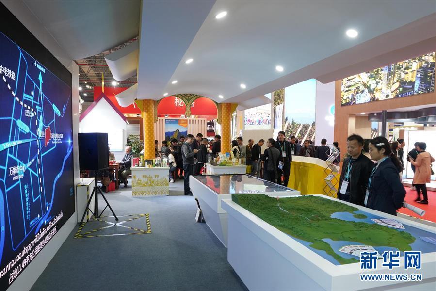 11月8日,人們在老撾展區(qū)參觀。 中國國際進口博覽會11月5日在上海開幕。國家貿(mào)易投資綜合展(國家展)是中國國際進口博覽會的重要內(nèi)容,共有82個國家、3個國際組織設立71個展臺。 新華社記者 程麗 攝