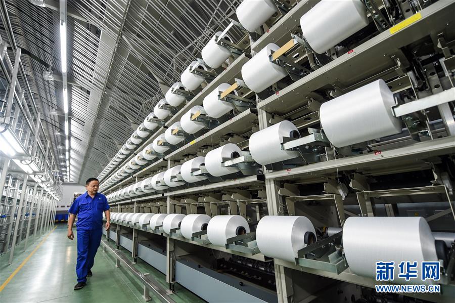 工作人員在位于蘇州市吳江區(qū)的恒力集團(tuán)化纖智能化加彈車間進(jìn)行巡檢作業(yè)(10月31日攝)。 新華社記者 李博 攝