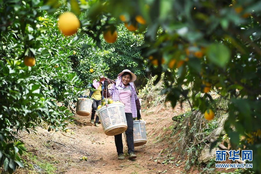 近日,江西省贛州市尋烏縣近20萬畝果園進入豐收采摘期,當?shù)毓r抓住晴好天氣開始采摘臍橙,果園一派繁忙景象。新華社記者 萬象 攝