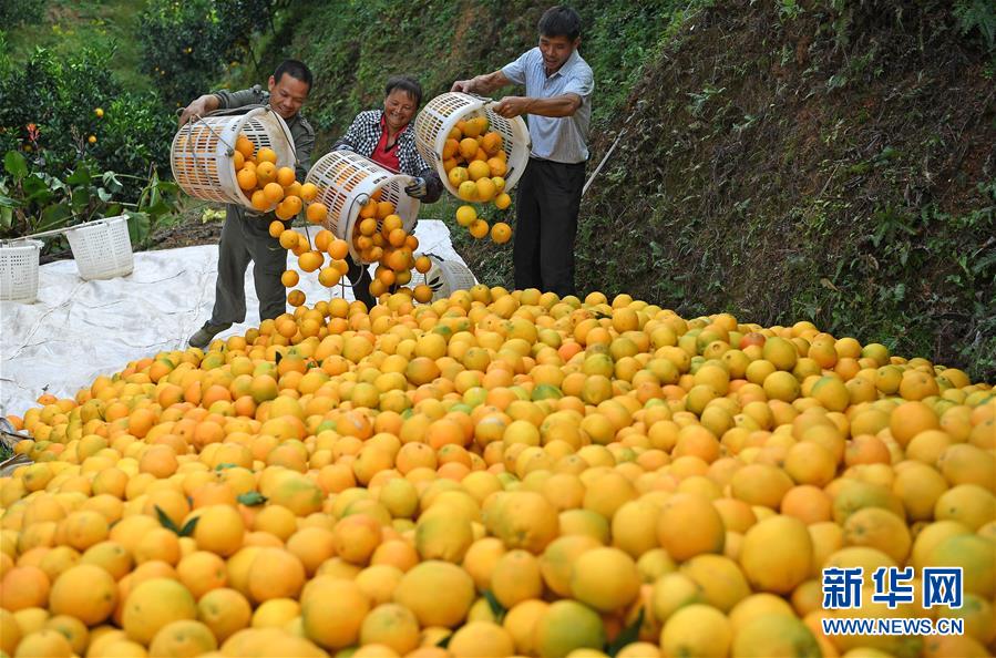 近日,江西省贛州市尋烏縣近20萬(wàn)畝果園進(jìn)入豐收采摘期,當(dāng)?shù)毓r(nóng)抓住晴好天氣開(kāi)始采摘臍橙,果園一派繁忙景象。新華社記者 萬(wàn)象 攝