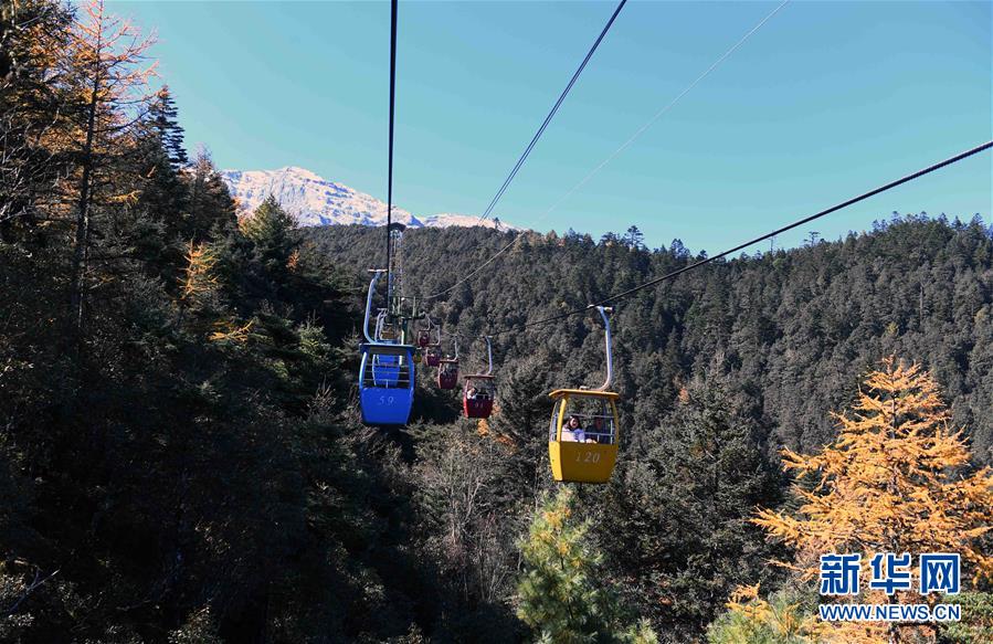 11月10日,游客乘坐纜車觀賞麗江玉龍雪山風(fēng)光。  新華社記者楊宗友攝