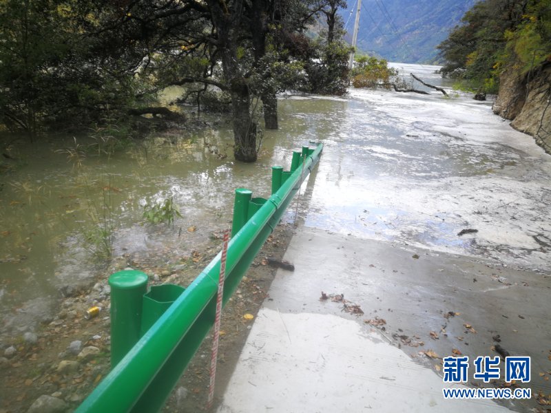 通往加拉村的路被淹(10月18日攝)。 新華社記者 普布扎西攝