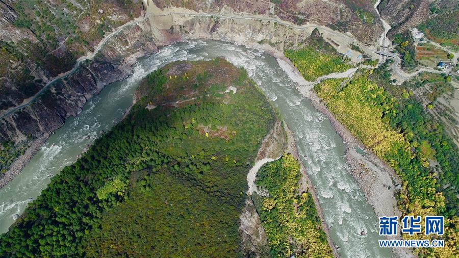 雅魯藏布江上的堰塞湖和堰塞體(10月18日攝)。 新華社記者 覺(jué)果攝