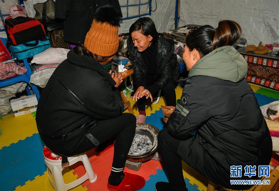 在西藏昌都市江達(dá)縣波羅鄉(xiāng)康扎西安置點,群眾在帳篷內(nèi)取暖(11月11日攝)。 西藏自治區(qū)江達(dá)縣波羅鄉(xiāng)康扎西安置點,離波羅鄉(xiāng)政府直線距離約3公里,位于一處地勢開闊平緩的山谷中,比堰塞湖水面高出100多米。10月11日金沙江白格段山體滑坡發(fā)生后,當(dāng)?shù)鼐驮谶@里設(shè)立了安置點,安置附近受災(zāi)群眾。 新華社記者 劉東君 攝