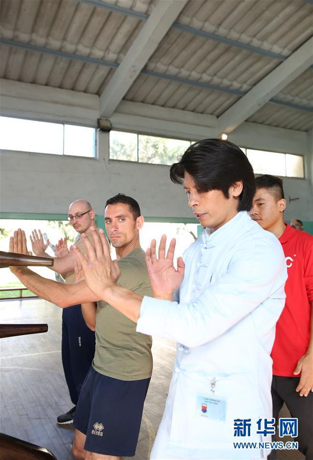 11月13日,在馬耳他首都瓦萊塔,鄭祖杰(前)向馬耳他士兵展示詠春拳。 當(dāng)日,中國國家級非物質(zhì)文化遺產(chǎn)詠春拳代表性傳承人鄭祖杰走進(jìn)馬耳他武裝部隊,向官兵展示詠春拳。這一活動是馬耳他中國文化中心與馬耳他武術(shù)協(xié)會合辦的詠春拳系列展示活動之一。 新華社記者 袁韻 攝