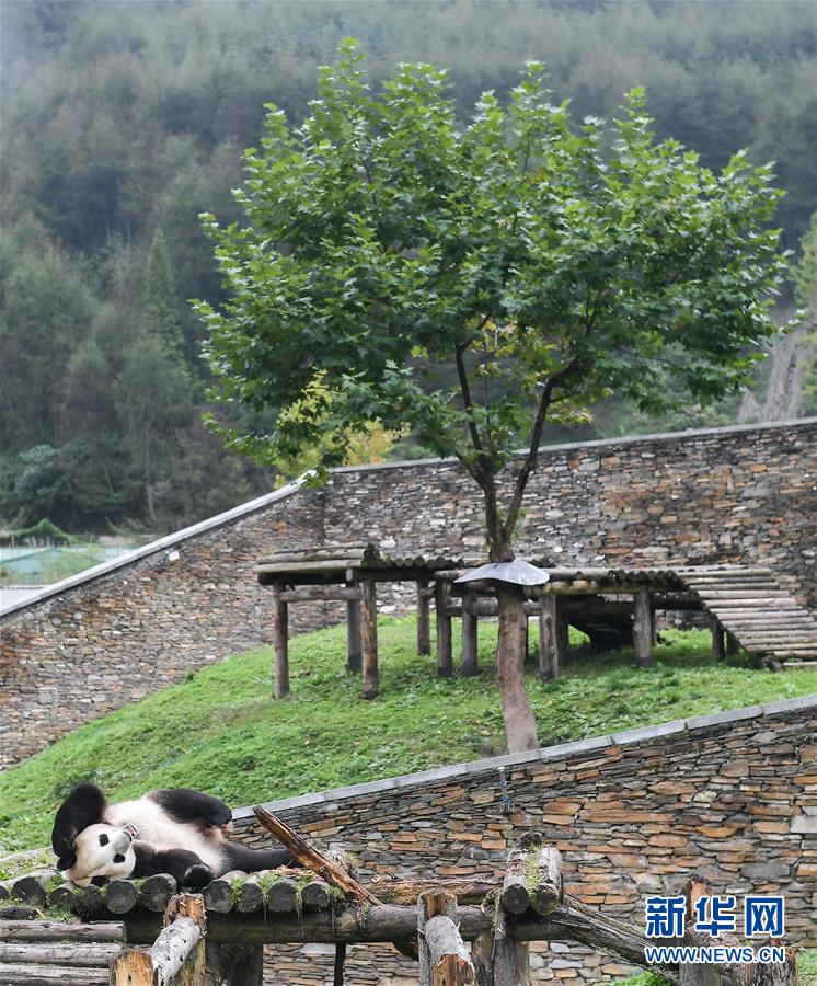 這是在中國大熊貓保護(hù)研究中心臥龍神樹坪基地拍攝的大熊貓(2017年9月23日攝)。 新華社記者 薛玉斌 攝