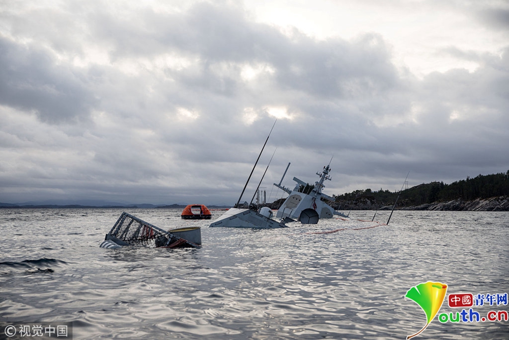 挪威:被撞翻的海軍護衛(wèi)艦打撈出水