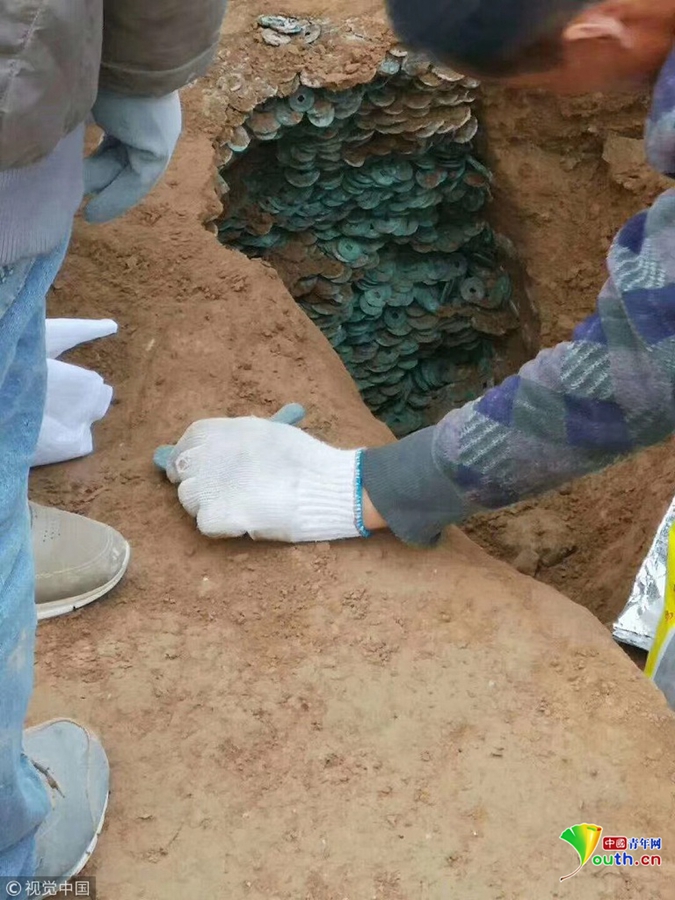 經(jīng)過發(fā)掘清理,古幣中最早的是唐開元年間的,最晚的為南宋時期,絕大多數(shù)都是北宋時期的錢幣。白水縣文物管理委員會主任趙張鋒介紹,這些古幣數(shù)量比較大,一般個人很少持有如此多的錢幣,初步分析可能是當(dāng)時一個錢莊存放的錢幣,有可能當(dāng)時遇到戰(zhàn)亂,匆忙之下進(jìn)行埋藏,但后來再無機(jī)會挖出。