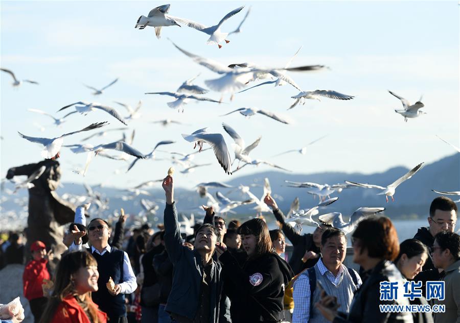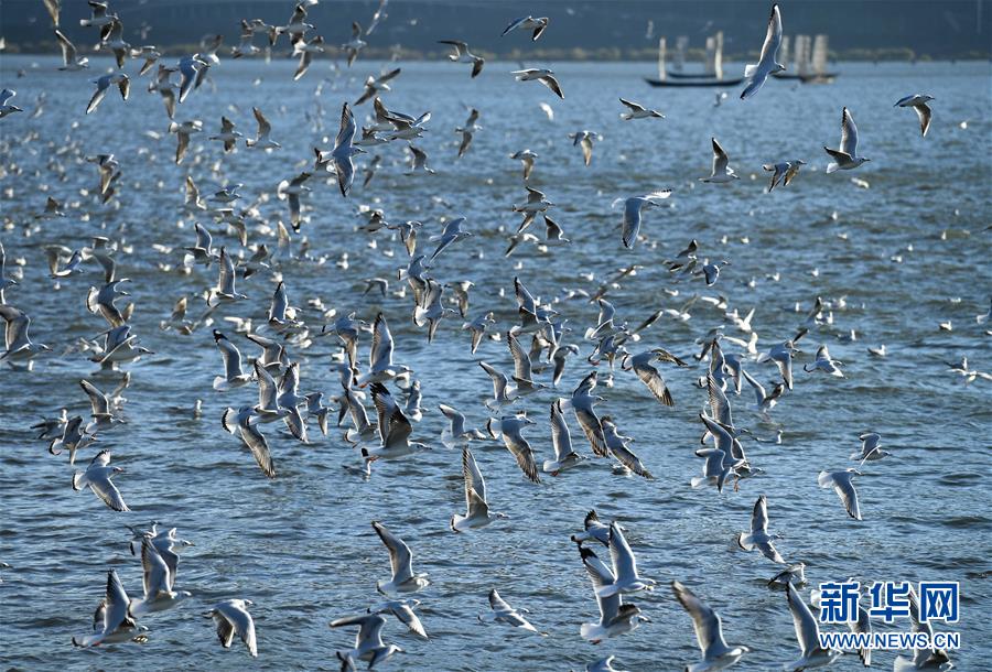 近日,云南省昆明市陽(yáng)光明媚、氣候宜人,不少市民和游客來(lái)到滇池大壩、大觀公園等地,觀賞前來(lái)越冬的紅嘴鷗。