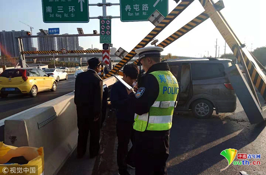 快速路司機(jī)開(kāi)車“走神” 眨眼撞塌限高桿