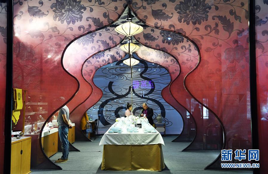 參觀者正在中國(guó)景德鎮(zhèn)國(guó)際陶瓷博覽會(huì)參觀(10月18日攝)。 新華社記者 萬(wàn)象 攝