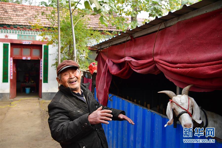 在河南蘭考縣葡萄架鄉(xiāng)黃砦村,村民潘秀山站在自家羊圈旁(11月10日攝)。新華社記者馮大鵬攝