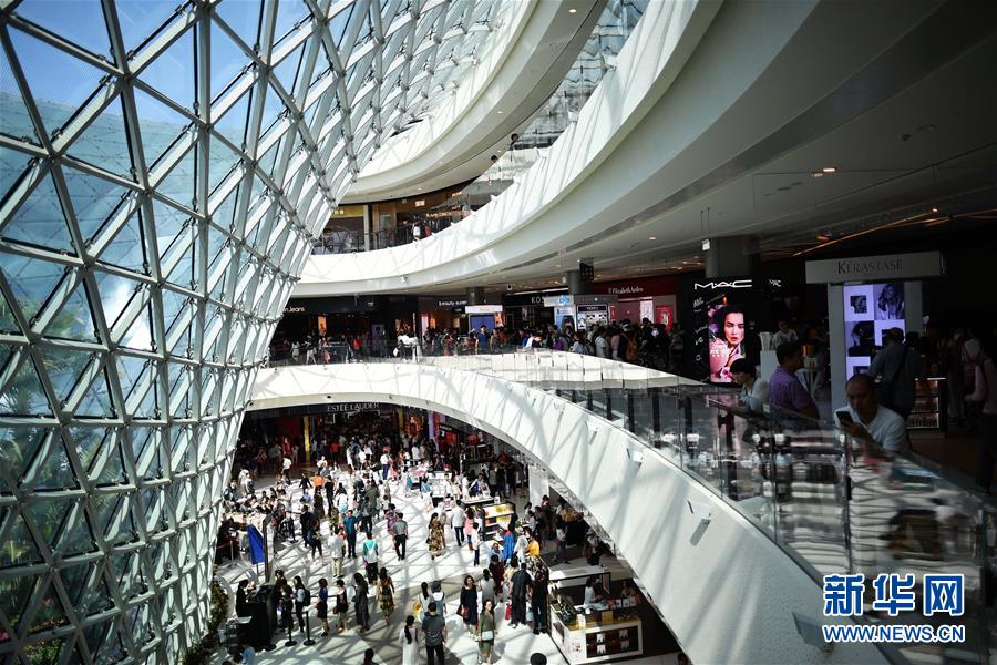 在海南三亞國際免稅城內(nèi),顧客在游覽、購物(2月18日攝)。 新華社記者 郭程 攝