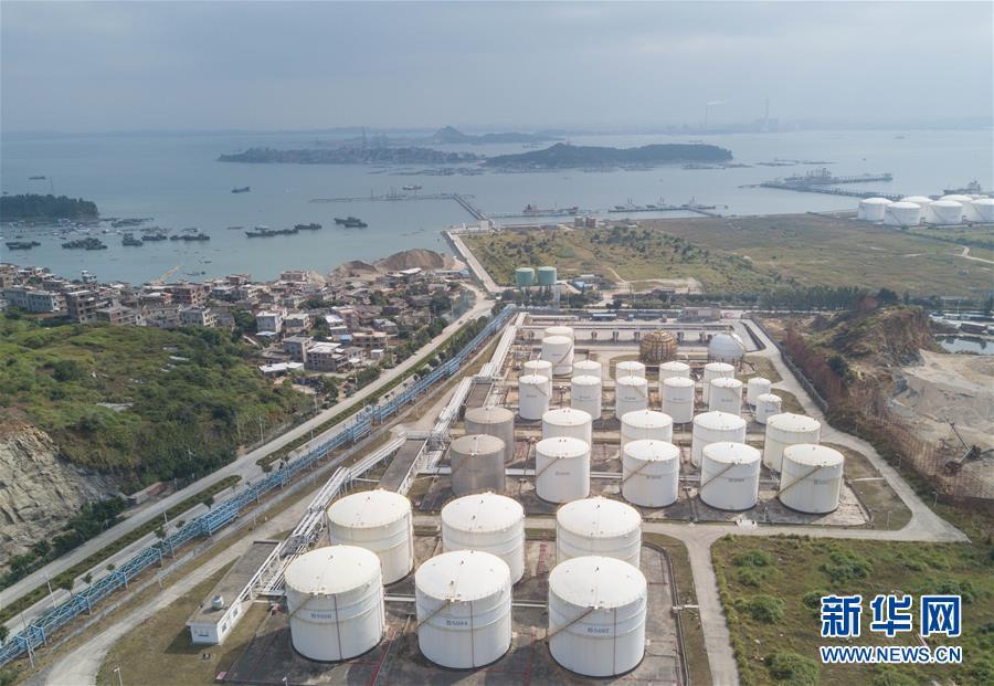 這是泉港裂解碳九泄漏事故涉事企業(yè)東港石化公司廠區(qū),遠(yuǎn)處為事發(fā)碼頭(11月6日無人機(jī)拍攝)。新華社記者 宋為偉 攝