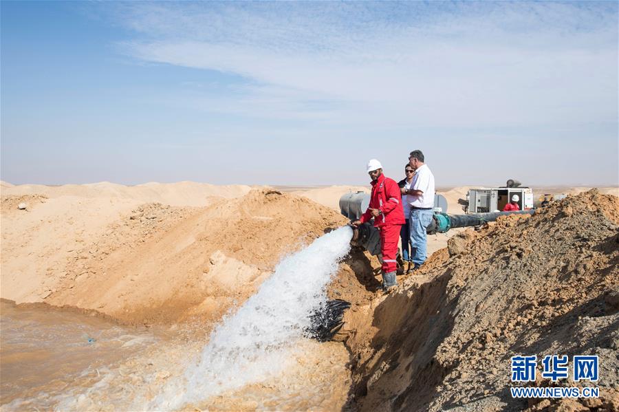 11月21日,在埃及明亞省,地下水從水管里噴涌而出。 2017年,中國中曼石油公司與阿聯(lián)酋海灣集團(tuán)簽訂合同,為該集團(tuán)在埃及沙漠中的大型農(nóng)業(yè)項(xiàng)目鉆探300口水井。根據(jù)合同,中曼石油將先期完成30口井的試鉆探,剩余水井將以每月7口的速度交付。目前有超過200名工人在鉆井現(xiàn)場作業(yè),大部分是埃及本地人。 新華社記者李碧念攝