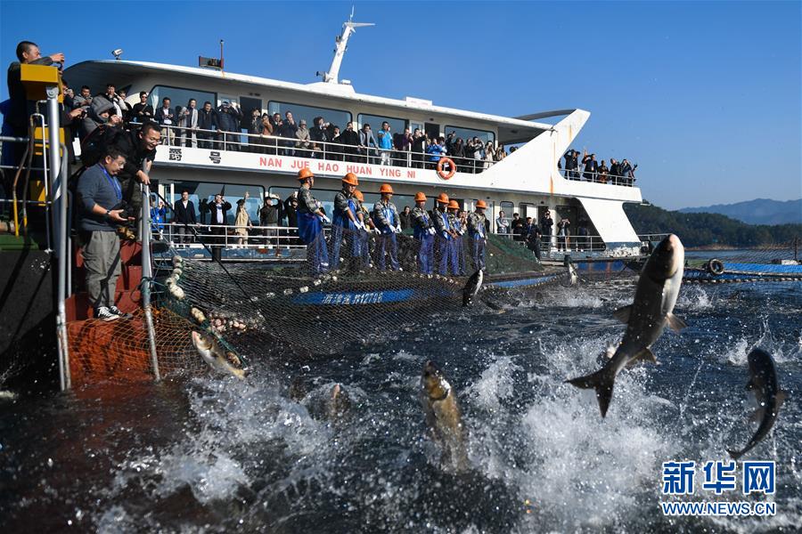 浙江千島湖:巨網(wǎng)捕魚