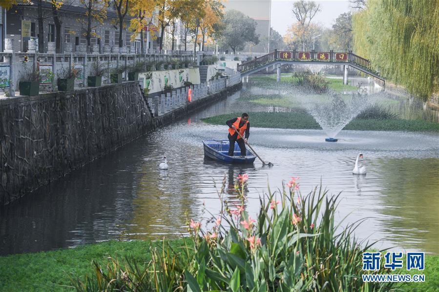 11月28日,長(zhǎng)興縣虹星橋鎮(zhèn)港口村東港內(nèi),河長(zhǎng)孫根法在打撈水面漂浮物。東港全長(zhǎng)1500米,環(huán)繞港口新村。2012年,新村建成后,港口村通過(guò)加固河岸、清理河道、種植浮草等方式對(duì)東港進(jìn)行生態(tài)治理,并由該村黨總支書記孫根法擔(dān)任河長(zhǎng),定期開(kāi)展巡查,引導(dǎo)村民自覺(jué)維護(hù)河道整潔。 新華社記者 徐昱 攝