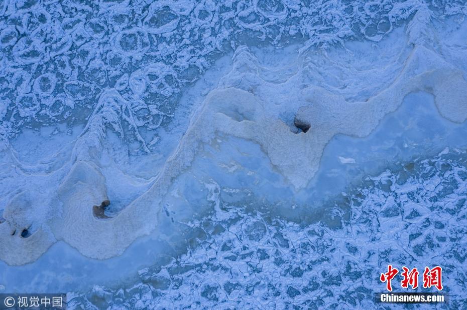 航拍中俄界湖興凱湖封凍 如同浪花被凝固