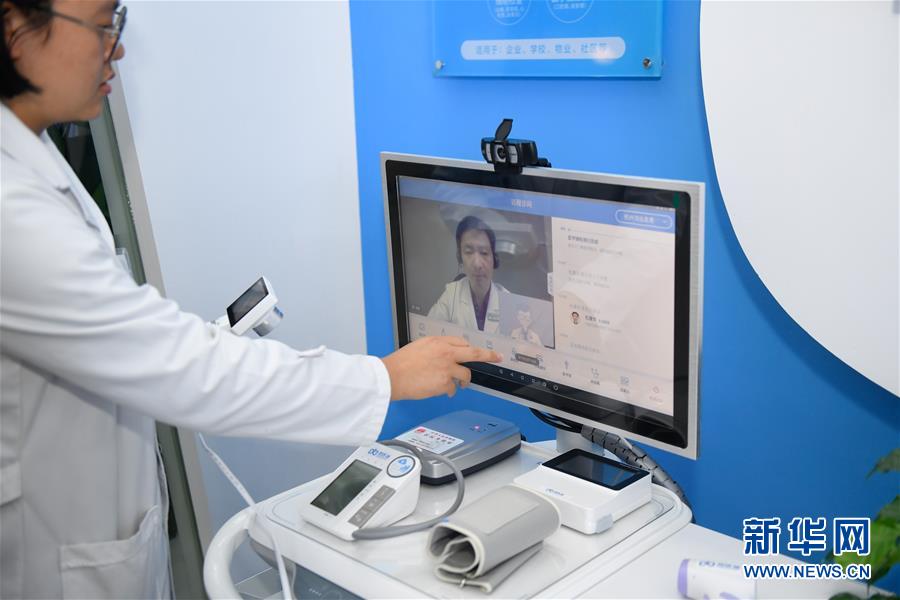 11月6日,烏鎮(zhèn)互聯(lián)網(wǎng)醫(yī)院的員工在操作“智能醫(yī)務室”與醫(yī)生的視頻連線功能。據(jù)了解,“智能醫(yī)務室”由智能移動醫(yī)療一體機、智能藥柜以及一系列檢查設備組成,根據(jù)健康檔案和檢查結(jié)果,視頻連接家庭醫(yī)生就能解決常見的醫(yī)療健康問題。 新華社記者黃宗治攝