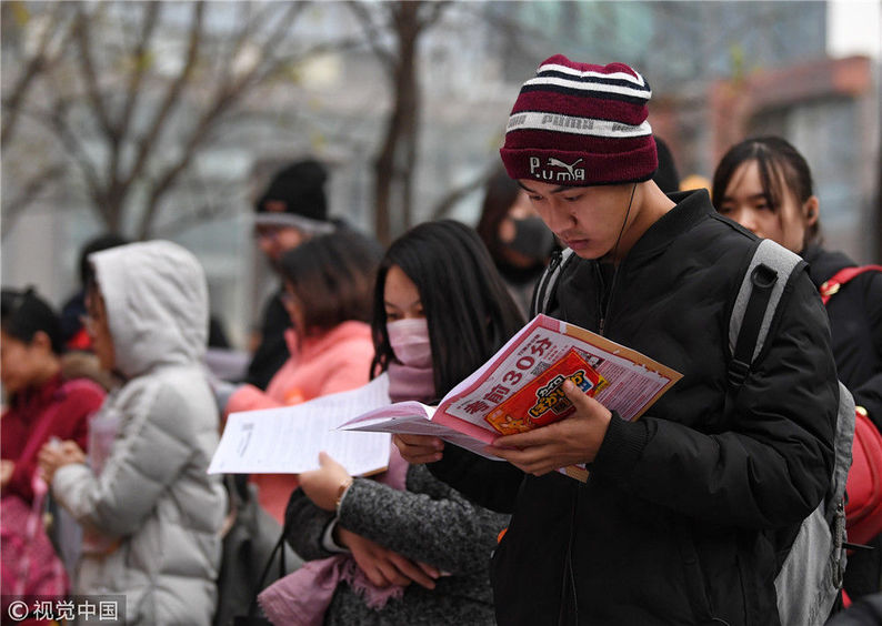 2018年12月2日,北京,在呼家樓中學(xué)考場(chǎng),考生正在抓緊時(shí)間進(jìn)行復(fù)習(xí)。北京青年報(bào) 郝羿/視覺中國