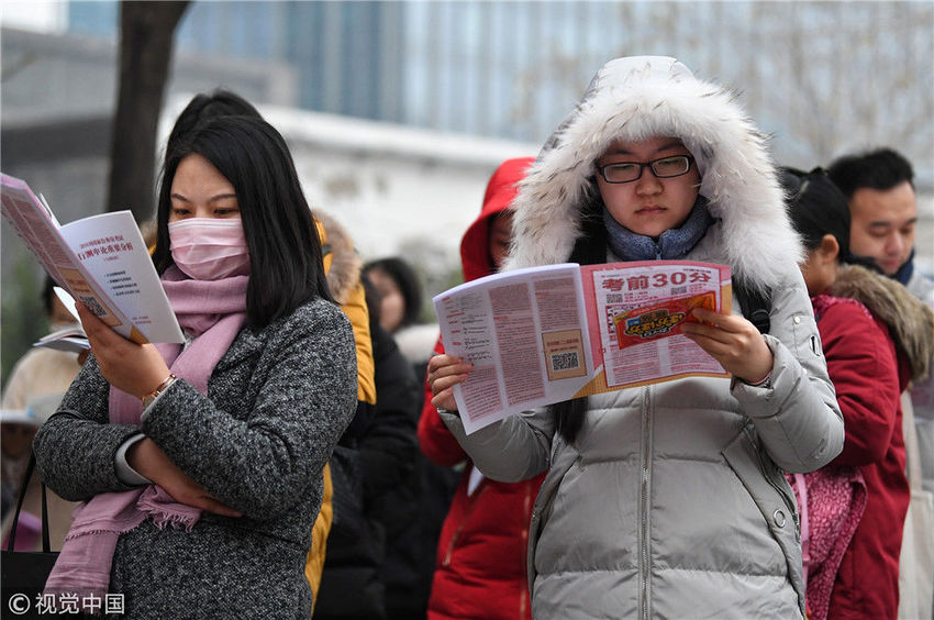 2018年12月2日,北京,在呼家樓中學考場,考生正在抓緊時間進行復習。北京青年報 郝羿/視覺中國