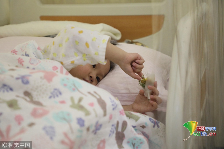 中國青年網(wǎng)北京12月3日電2018年11月17日,在北京博仁醫(yī)院病房內(nèi),4歲的小婭馨披著一條象征著婚紗的毯子坐在床上,爸爸袁東方雙手捧著一束小小的假鮮花單膝跪地向女兒“求婚”,隨后,父女倆緊緊地擁抱在一起,顯得既幸福又傷感。旁邊的小婭馨媽媽抹著眼淚抽泣著說“我女兒未必明白結(jié)婚寓意著什么,但她真的好想健康地活著!她是那么天真無邪,又那么懂事可愛,我們真舍不得丟下她不管,祈求社會上的好心人幫幫我們,救救我心愛的女兒吧!”。