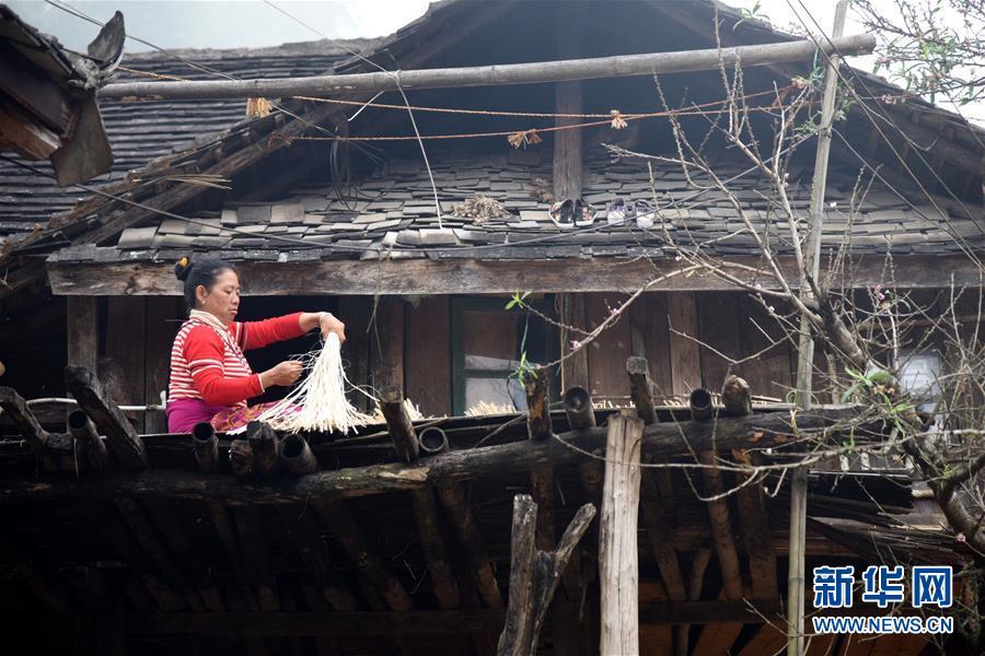 12月4日,在云南省瀾滄拉祜族自治縣酒井鄉(xiāng)勐根村老達(dá)保寨,村民在露臺(tái)上做農(nóng)活。 新華社記者張瑞琪攝