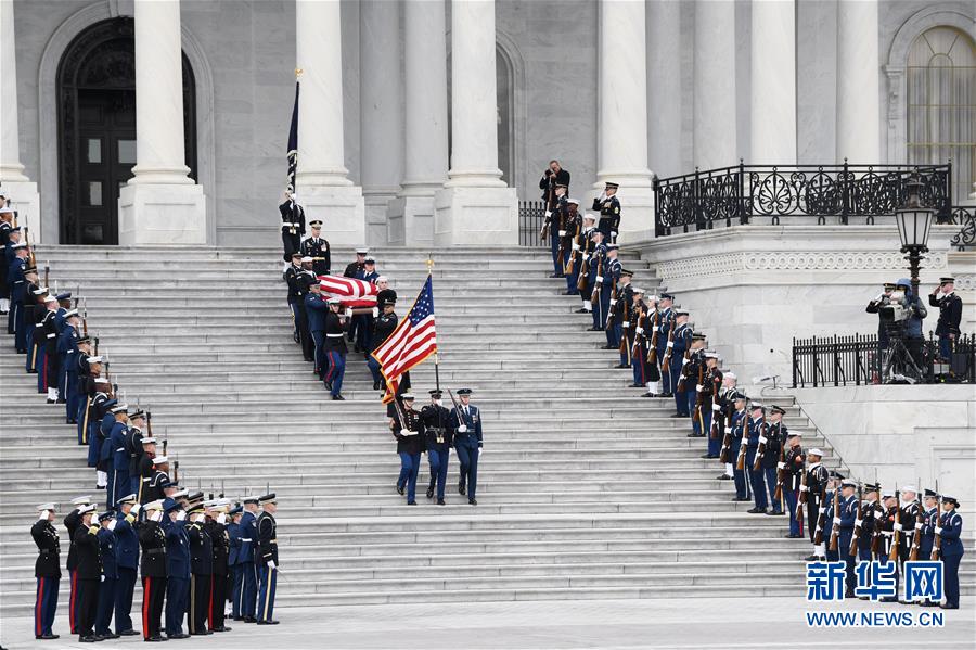 12月5日,在美國首都華盛頓,美國前總統(tǒng)喬治·赫伯特·沃克·布什的靈柩離開國會大廈。