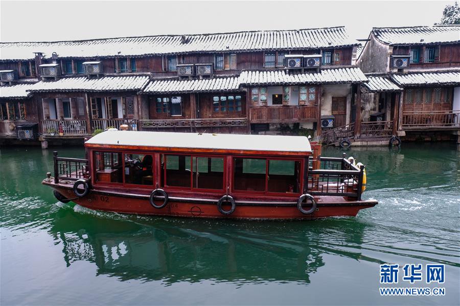 12月9日,游船行駛在烏鎮(zhèn)景區(qū)的河道內(nèi)。 受冷空氣影響,浙江省桐鄉(xiāng)市迎來大范圍降雪,千年古鎮(zhèn)烏鎮(zhèn)被厚厚的白雪覆蓋。小橋流水、白墻黑瓦的江南水鄉(xiāng)古鎮(zhèn),呈現(xiàn)出冬日雪鄉(xiāng)的獨(dú)特韻味,吸引各地游客前來觀賞。 新華社記者 徐昱 攝
