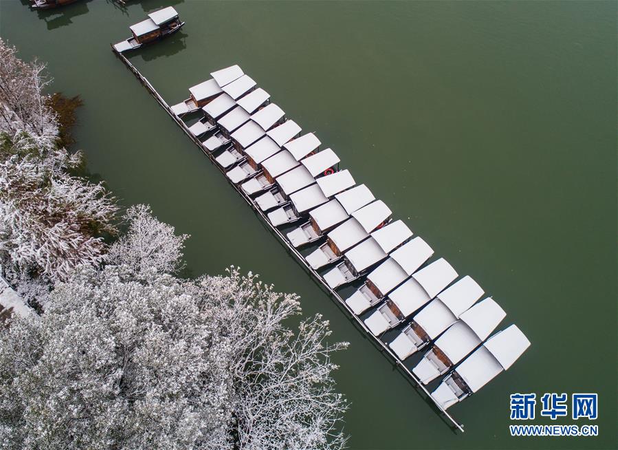 12月9日,空中俯瞰被白雪覆蓋的烏鎮(zhèn)景區(qū)(無人機(jī)拍攝)。 受冷空氣影響,浙江省桐鄉(xiāng)市迎來大范圍降雪,千年古鎮(zhèn)烏鎮(zhèn)被厚厚的白雪覆蓋。小橋流水、白墻黑瓦的江南水鄉(xiāng)古鎮(zhèn),呈現(xiàn)出冬日雪鄉(xiāng)的獨(dú)特韻味,吸引各地游客前來觀賞。 新華社記者 徐昱 攝