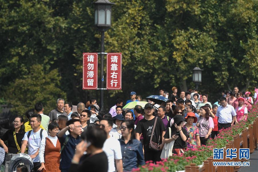 10月7日,杭州西湖風(fēng)景區(qū)的斷橋上游人絡(luò)繹不絕。為維持秩序,景區(qū)采取了雙向游客互相隔離的措施。當(dāng)日是國(guó)慶黃金周最后一天,眾多游客來到杭州西湖景區(qū)觀光游覽,熱度不減。據(jù)杭州市旅游委員會(huì)公布的數(shù)據(jù)顯示,從10月1日起截至10月7日12時(shí),國(guó)慶七天杭州市各景區(qū)(點(diǎn))接待游客總量達(dá)到1776.14萬人次,其中西湖風(fēng)景名勝區(qū)管委會(huì)所屬公園景點(diǎn)共接待游客452.2萬人次。新華社記者 黃宗治 攝