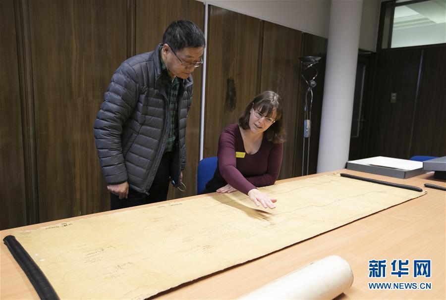 11月2日,在英國紐卡斯爾的泰恩—威爾檔案館,檔案管理員瑞秋·吉爾(右)向新華社記者介紹致遠艦設(shè)計圖紙。 新華社記者日前在紐卡斯爾泰恩—威爾檔案館查找北洋海軍史料時發(fā)現(xiàn)一套七張、檔案名為“中國巡洋艦舵機設(shè)計圖”的原始圖紙。塵封百年,甲午海戰(zhàn)中抗擊日艦后沉沒的清北洋海軍致遠艦部分原廠設(shè)計圖紙在其建造地——英國紐卡斯爾市的一家檔案館首次被發(fā)現(xiàn),為打撈那段悲壯的歷史提供了重要參考。 新華社記者 韓巖 攝