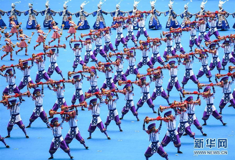 12月10日,廣西壯族自治區(qū)成立60周年慶祝大會(huì)在廣西體育中心隆重舉行。這是慶祝大會(huì)上的群眾文藝表演。 新華社記者 申宏 攝