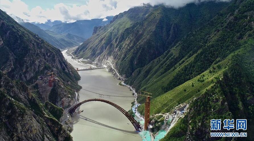 9月28日無人機(jī)拍攝的川藏鐵路拉林段重點(diǎn)標(biāo)志性工程藏木特大橋。當(dāng)日,隨著最后一節(jié)鋼管拱的對(duì)位和鎖定完畢,川藏鐵路拉林段藏木特大橋成功合龍,標(biāo)志著大橋主體結(jié)構(gòu)施工取得了關(guān)鍵性勝利。藏木特大橋由中國(guó)中鐵廣州局集團(tuán)承建,拱高112米,橋橫跨雅魯藏布江峽谷,水深66米。新華社記者普布扎西攝