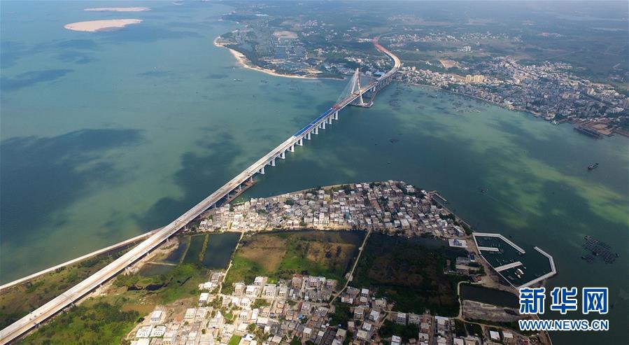2018年12月5日,海口,高空航拍橫跨??诒备蹗u的鋪前大橋。