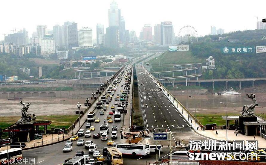 【跨度最大的梁橋——重慶石板坡長(zhǎng)江復(fù)線大橋】重慶石板坡長(zhǎng)江大橋復(fù)線橋跨徑330米,于2003年12月正式動(dòng)工,2006年8月28日竣工通車,全長(zhǎng)1103.5米,寬19米,為單向四車道,設(shè)計(jì)日通行能力8萬輛。
