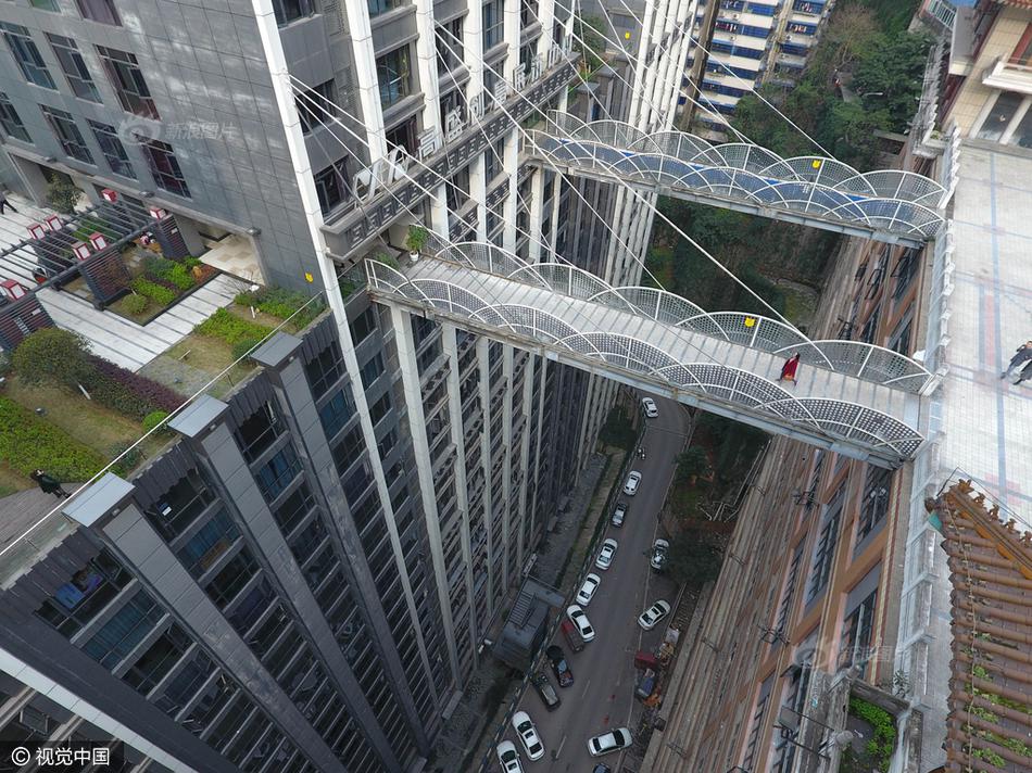 2017年3月16日,重慶,渝中區(qū)一棟大樓從22層架起兩座平行的天橋,連接對(duì)面的魁星樓廣場(chǎng)地面。圖片來(lái)源:視覺(jué)中國(guó) |