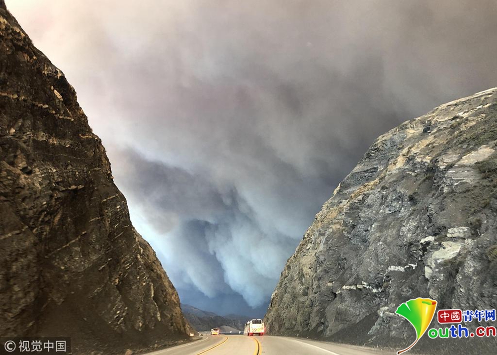 當?shù)貢r間11月9日下午,美國加利福尼亞州南部文圖拉郡(Ventura County)等地熊熊山火已延燒逾萬英畝,濃煙遮天蔽日。