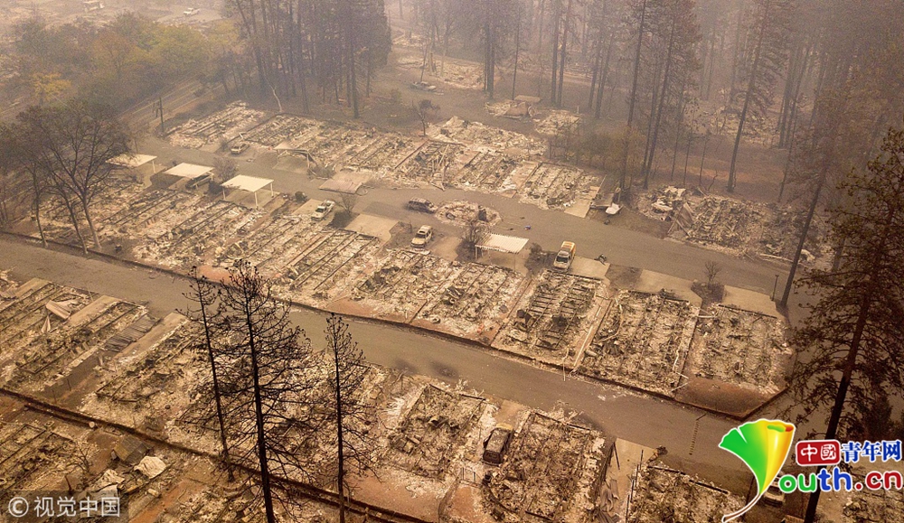 天堂變“地獄” 航拍加州山火肆虐社區(qū)似墓地