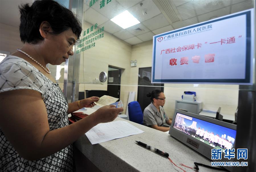 在廣西壯族自治區(qū)人民醫(yī)院,從北海到南寧異地就醫(yī)的鄭曉榮持社會(huì)保障卡在結(jié)算醫(yī)藥費(fèi)(2015年6月30日攝)。 歷史進(jìn)步的背后,必有堅(jiān)強(qiáng)領(lǐng)導(dǎo)力量的引領(lǐng)。 “堅(jiān)持黨的領(lǐng)導(dǎo),全面從嚴(yán)治黨,是改革開放取得成功的關(guān)鍵和根本?!绷?xí)近平總書記總結(jié)改革開放40年歷史和實(shí)踐作出這一重要論斷。 歷史關(guān)頭,中國共產(chǎn)黨的關(guān)鍵抉擇,改變了當(dāng)代中國的命運(yùn); 宏偉征程,中國共產(chǎn)黨帶領(lǐng)億萬人民在改革開放實(shí)踐中,實(shí)現(xiàn)歷史性跨越; 面向未來,中國共產(chǎn)黨肩負(fù)實(shí)現(xiàn)中華民族偉大復(fù)興的歷史使命,把改革開放繼續(xù)推向前進(jìn)。 新華社記者李斌攝
