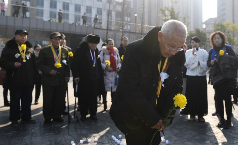 抗戰(zhàn)老兵在南京祭奠遇難同胞