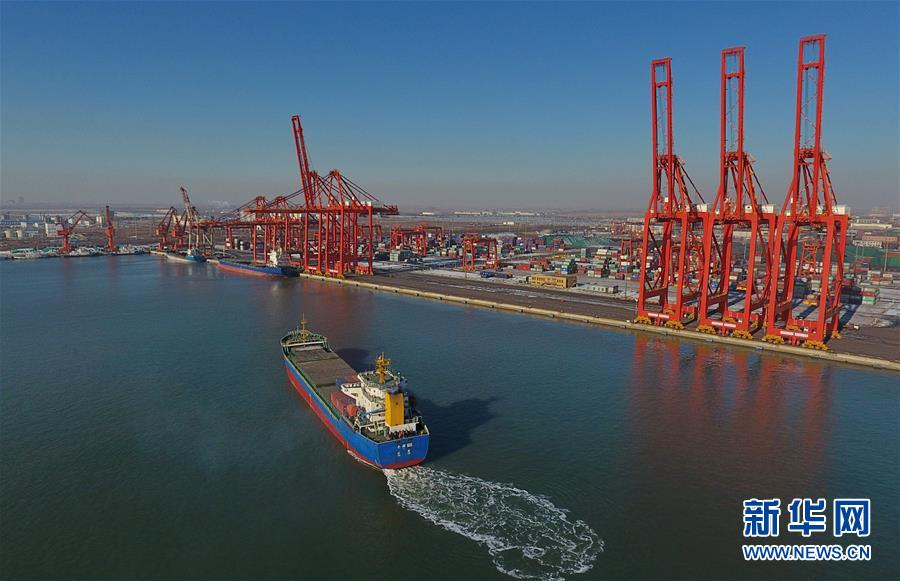 這是唐山港京唐港區(qū)集裝箱碼頭(12月13日無人機(jī)拍攝)。 記者從河北省交通運(yùn)輸廳獲悉,2018年1至11月,河北省港口貨物吞吐量完成10.5億噸,為年度計劃的104%,同比增長5.1%,位居全國沿海省份第四位。 新華社記者楊世堯攝